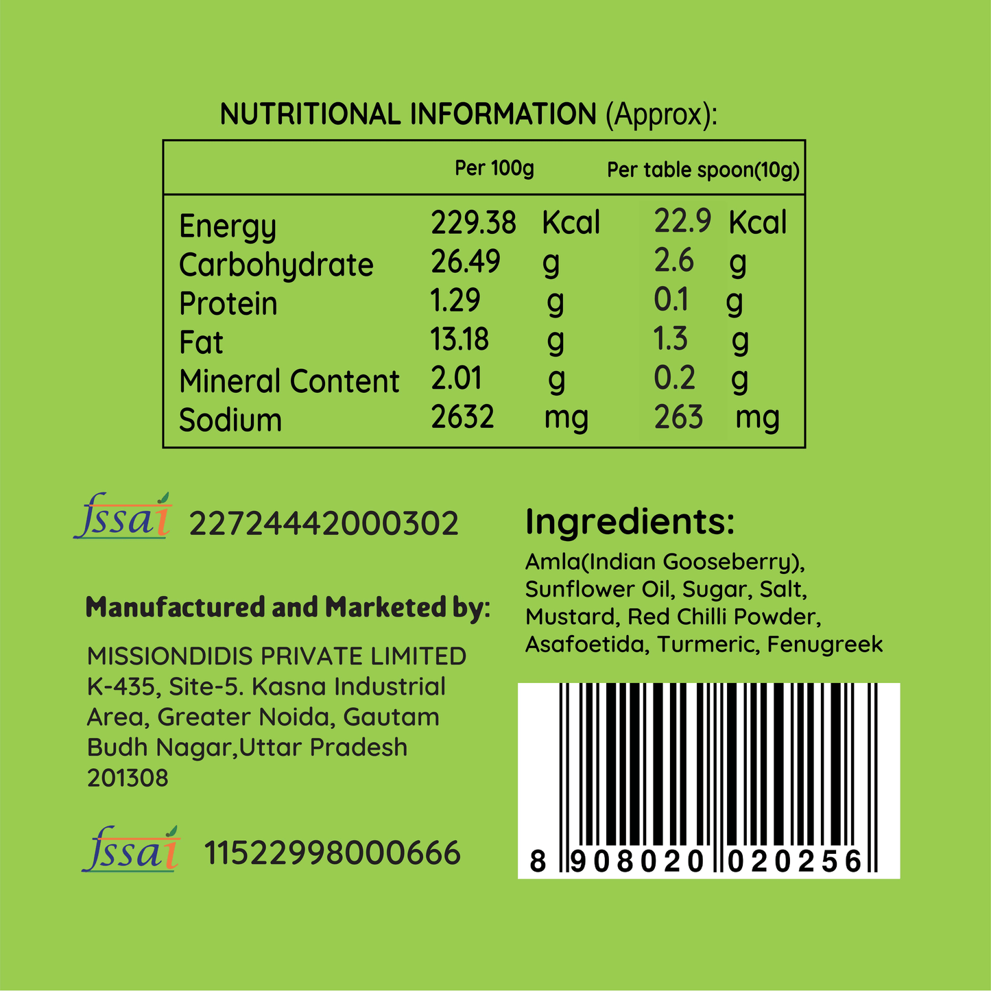Our amla pickle is made with Authentic Grandma's Recipe and Farm Fresh amlas and Spices from Pune, sautéd in premium sunflower oil