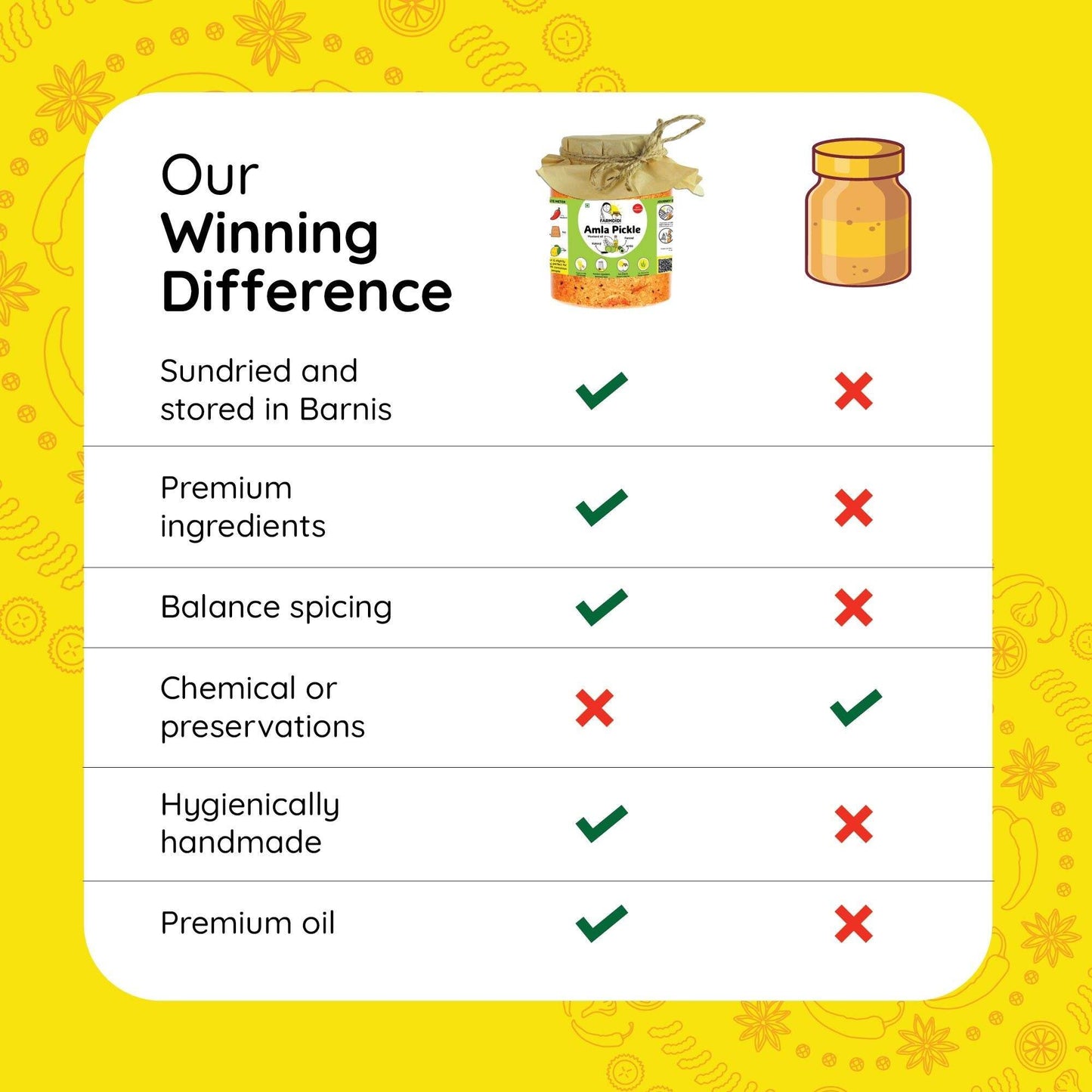 We use age-old Grandma's recipe and fresh amlas and premium spices straight from the farm, making it the tastiest amla achar online.