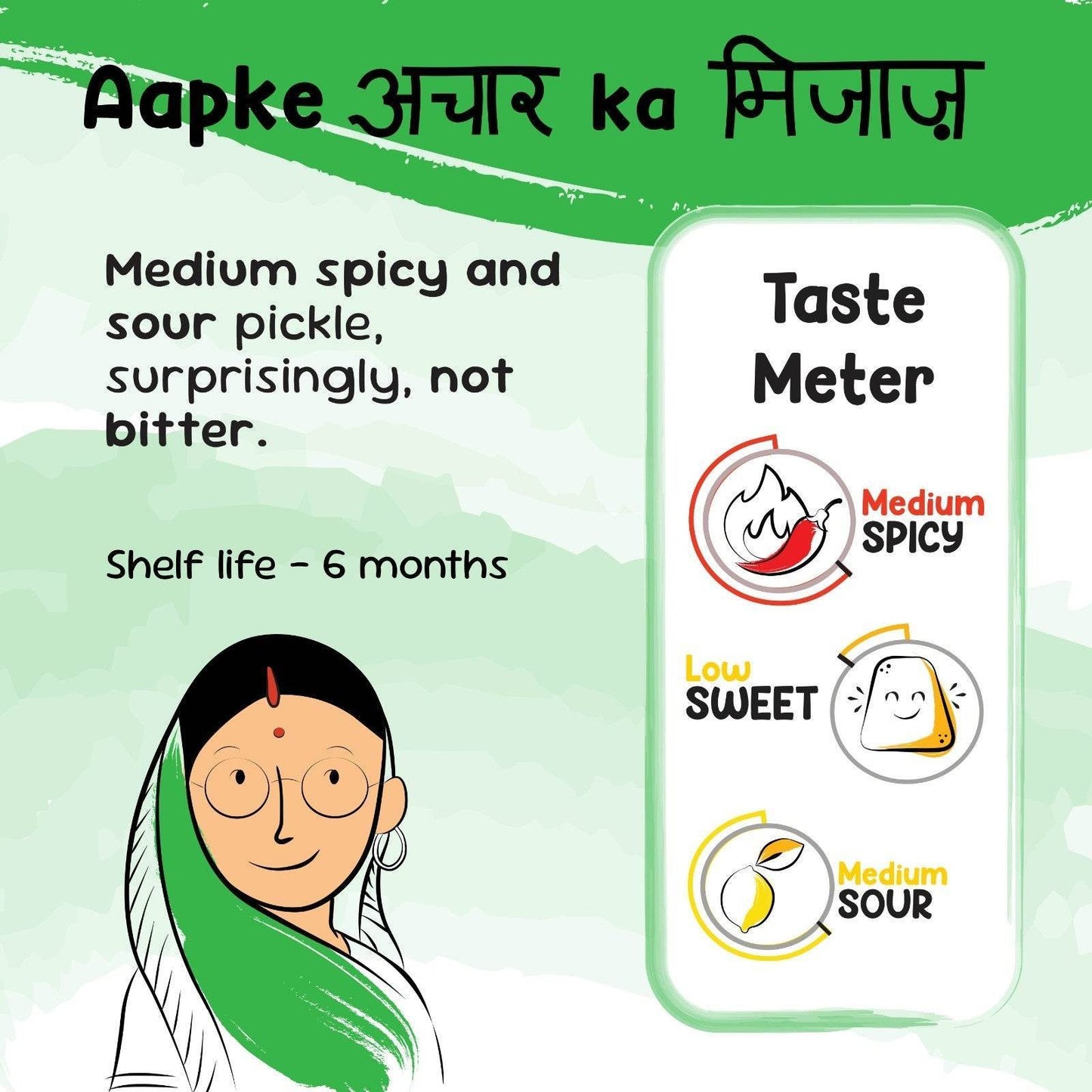 The karelas are picked with spices and instead of oil, we use lemon juice to make this tasty pickle. According to our farmer didis, replacing regular pickles with this karela ka achar in your diet can ensure optimal health and can stimulate your taste buds while eating regular meals.