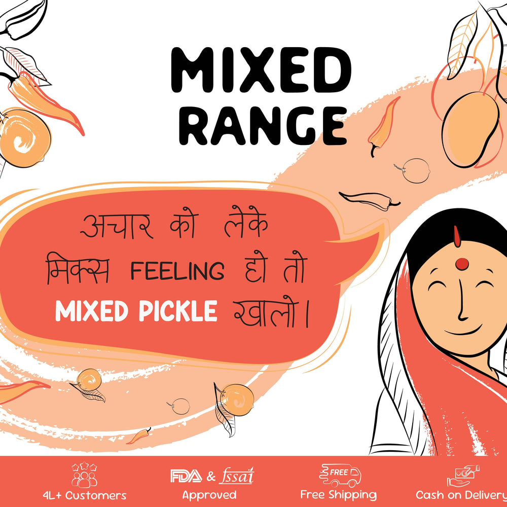 To keep your mixed pickle and gajar gobi shalgam pickle fresh, store them in a cool, dry place, away from direct sunlight. Always use a clean, dry spoon to prevent contamination and preserve the taste. When stored correctly, these pickles maintain their authentic flavour for 6 to 9 months. Be sure to close the jar tightly after each use to keep your pickles fresh and full of flavour.