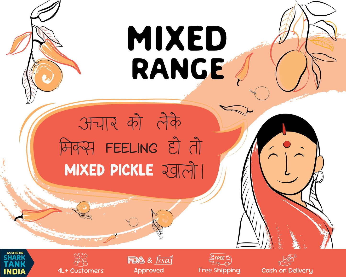 FarmDidi’s mixed pickle collection features two delicious varieties – the classic mixed pickle, and the traditional North Indian gajar gobi shalgam pickle. Whether you know it as mixed achar, vegetable pickle, or just good old mixed pickle, each jar brings bold, homemade flavour with no preservatives.