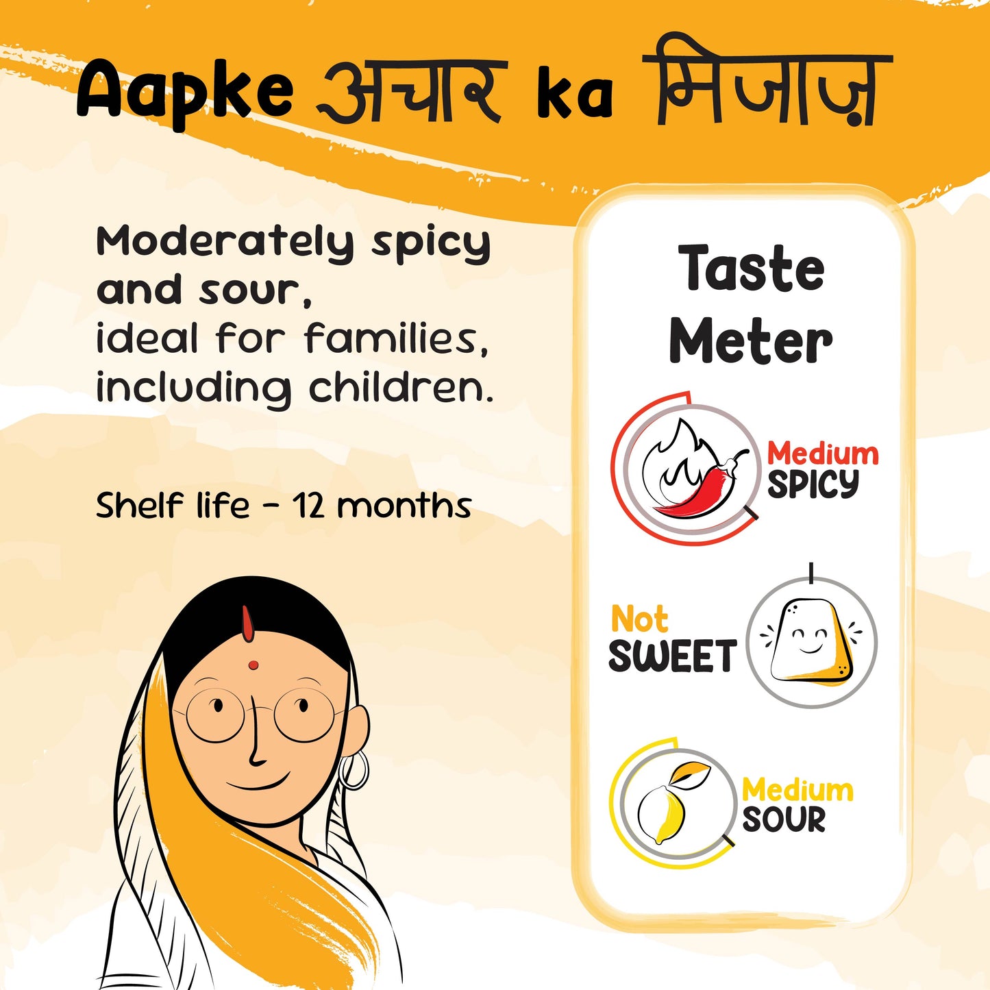 The shelf life of this aam ka achaar is 12 months from the date of manufacture. To store it, keep it in a cool dry place and use a clean spoon to serve.